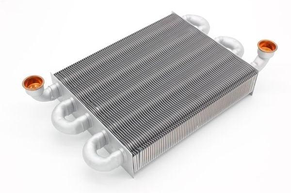 Теплообменник уходящих газов A1JB/A1HB 12/24 kW для котлов Viessmann. Представляет собой медные трубки и напаянные пластины. Для обеспечения жаростойкости покрыт силумином. Предназначен для обеспечения нагрева теплоносителя отопления и проточной воды горячего водоснабжения.